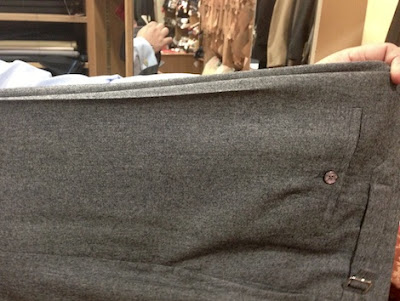 Also the trousers, disappointingly, had been pressed flat. This was obvious from the two creases up the back: the original crease and a new, sharper one from where the trousers had been folded in two and placed in the machine (as shown at top).